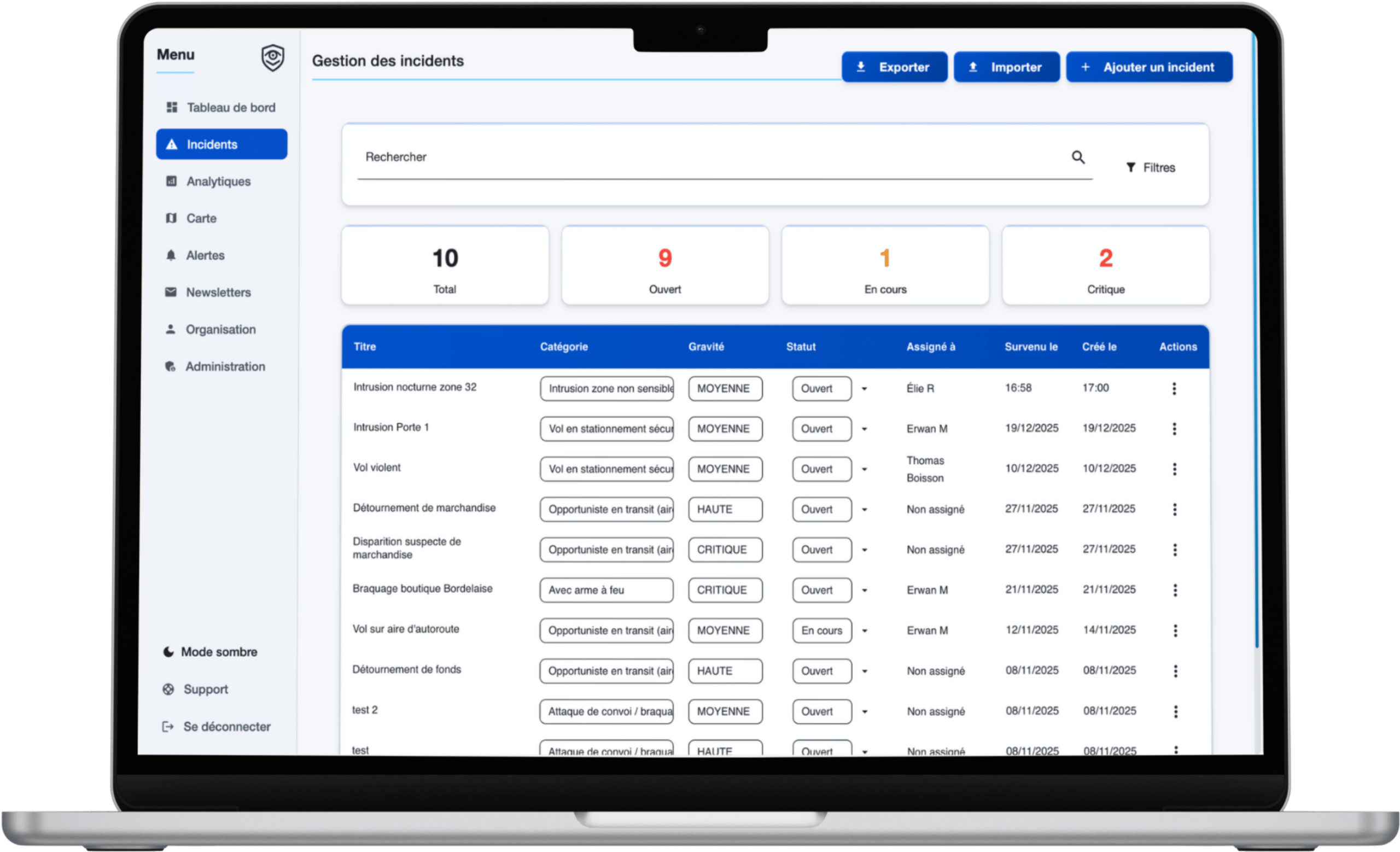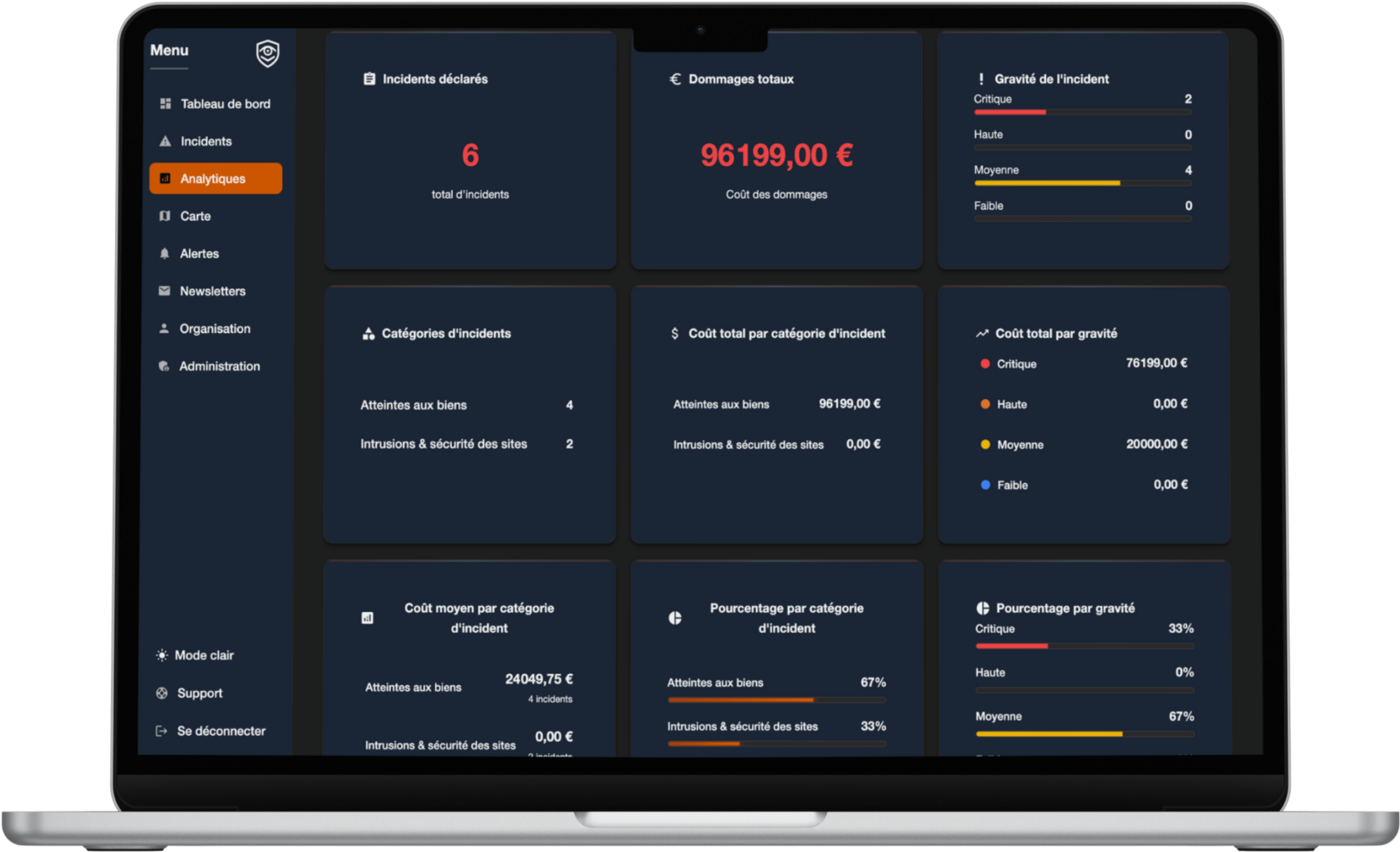 En quelques clics, informez votre direction et anticipez les besoins futurs. Ergonomique, fiable et pensé pour la prise de décision, le logiciel redonne aux directions sûreté la visibilité dont elles manquaient pour piloter efficacement leurs actions et démontrer leur impact.